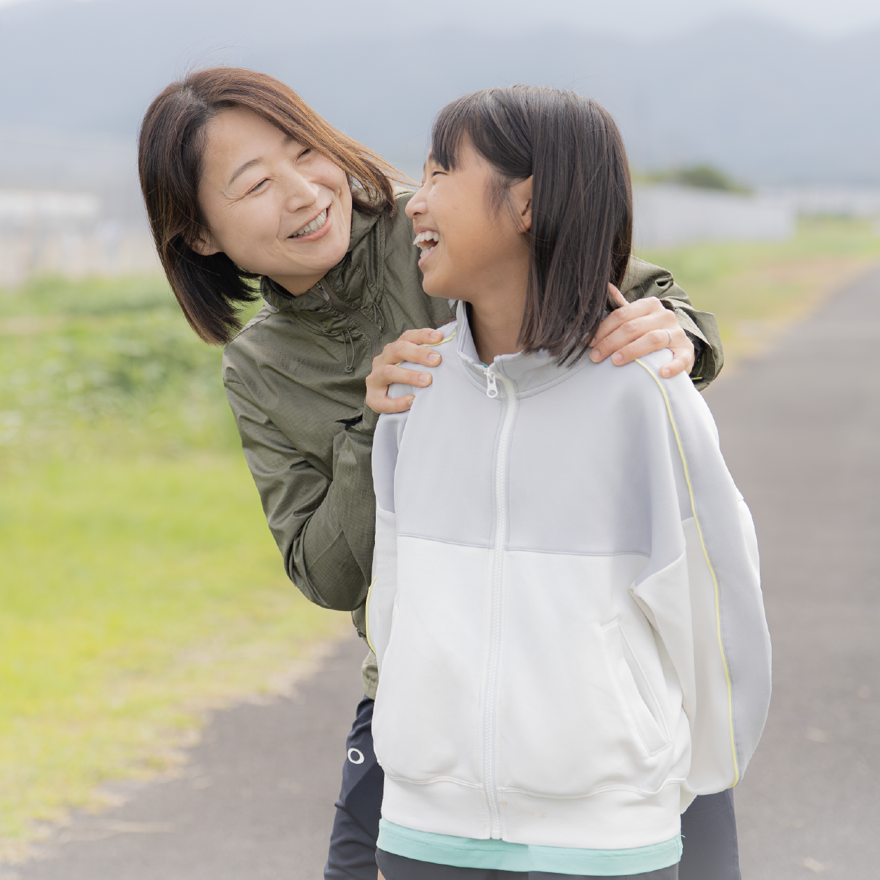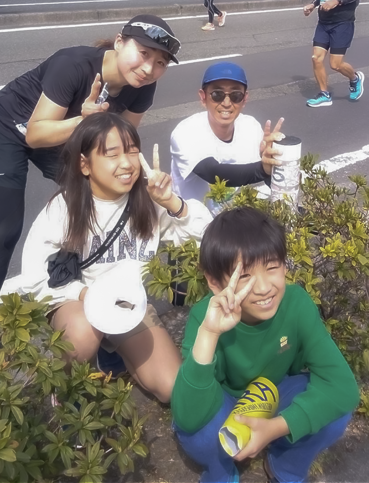 クラブの練習が終わってからも、家の周りをお母さんと走ります。でも宿題もあるし、時々面倒くさくなって「休みたい⋯」と言うと、お母さんは「いいよ」と言いながらも、明らかに不機嫌な返事。私とお母さんの気持ちがぶつかる時もありますが、お父さんやお母さんは、「自分で決めた目標、最後まで応援しているよ」と言っています。でも「言葉で言うだけは簡単じゃん!」と言い返したくなる時もあります。ただ、練習に関してはあまり言えません。お父さんとお母さんはフルマラソンにチャレンジしているからです。去年も鹿児島マラソンに出場し、応援に行きました。折り返し地点でドキドキしながら待っていると、2人が笑顔で来て握手をしてくれて、また走り出しました。心配だったけど、2人の後ろ姿はとてもカッコ良く見えました。