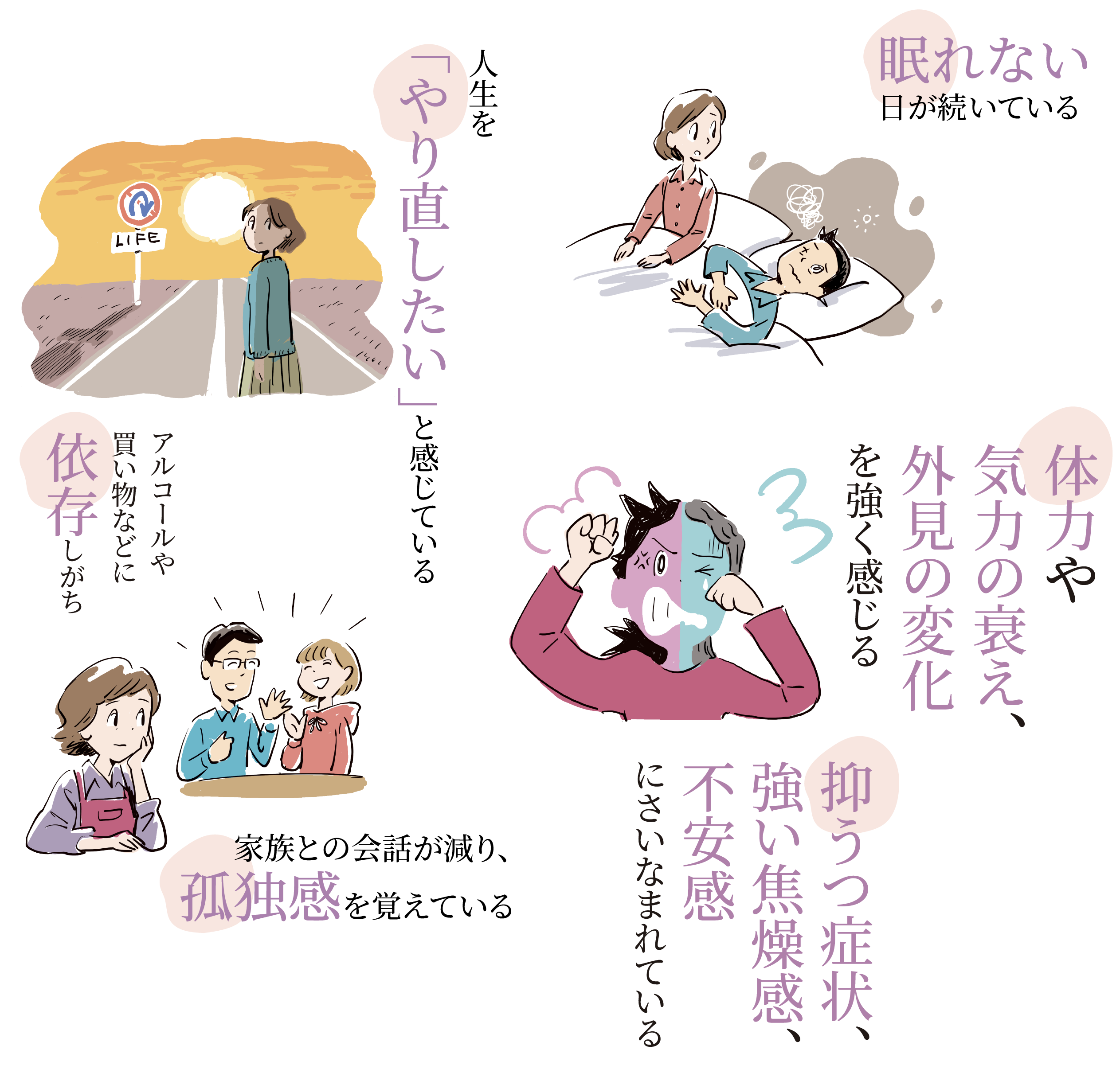 中年期に入ってふと襲われる気分の落ち込みや身体的不調。