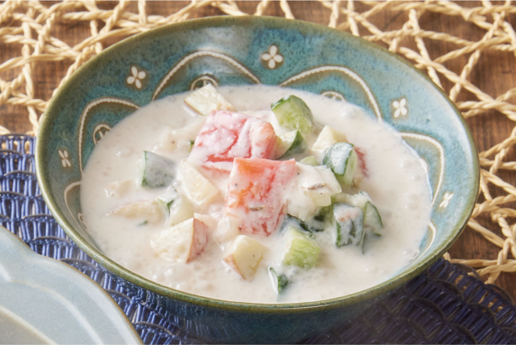 うま味のあるヨーグルトと塩だけで味が決まる、お手軽サラダ。インドではヨーグルトに水を加えて作ることが多いですが、このレシピでは野菜の水分を生かしています。