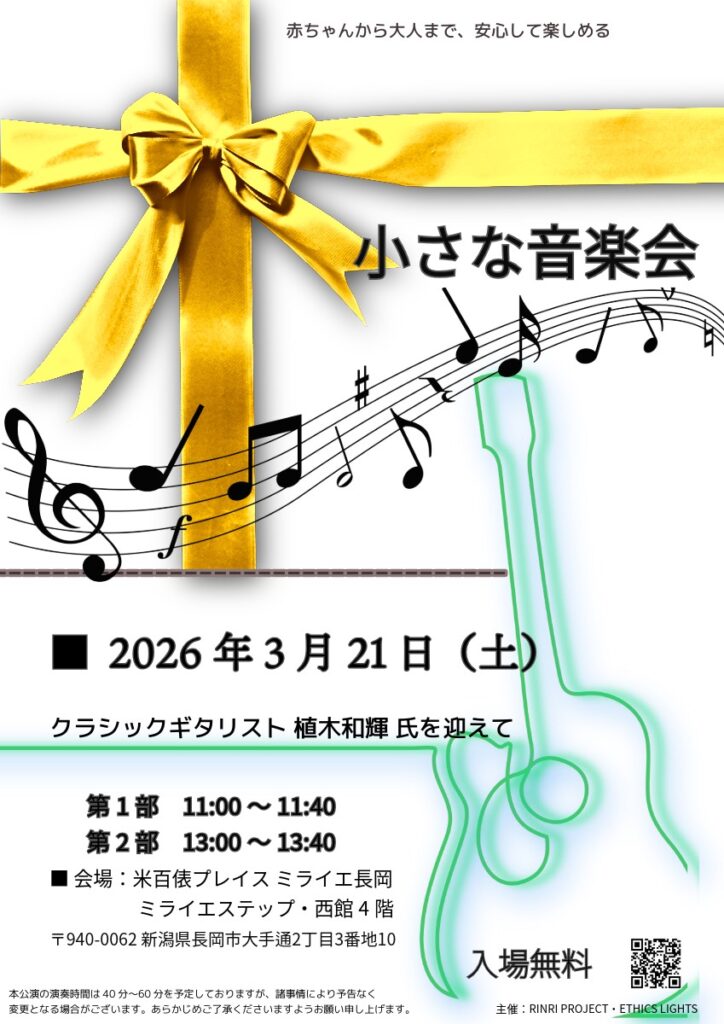 今回は、クラシックギタリスト 植木和輝氏を迎えて、新潟県長岡での初開催となります!